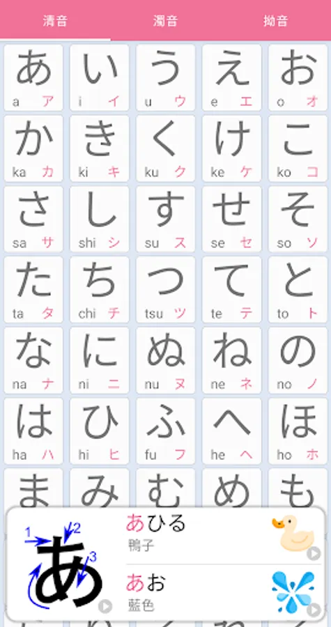 ※ Each letter contains 2 words and pronunciations, quickly learn the 50 syllables