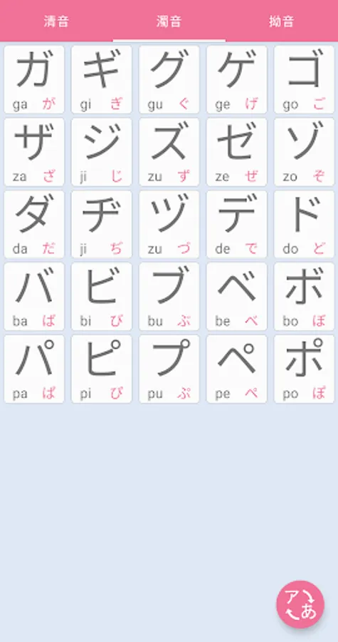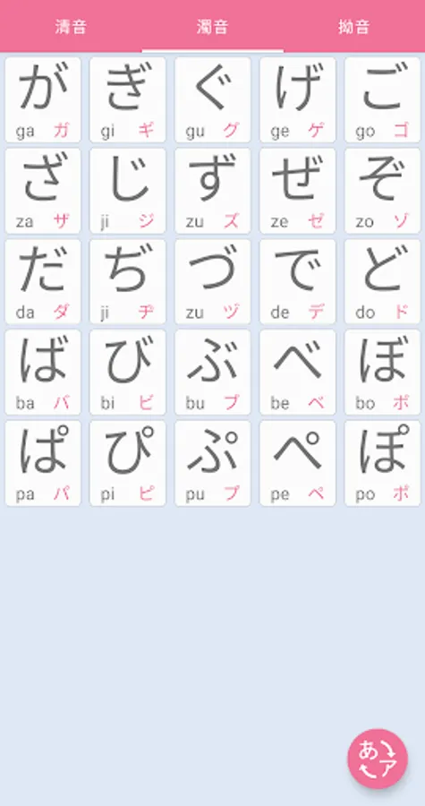 ※ Including the pronunciation and stroke order of unvoiced, voiced and oblique sounds