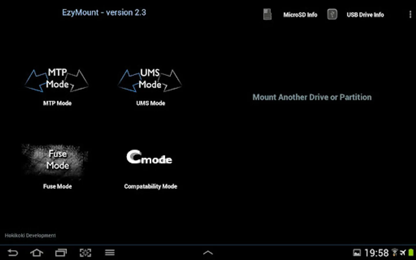 A lot of Android devices are limited to 4gb file sizes on fat32 filesystems for their external USB storage media or for their internal MicroSd cards. This is inconvenient to say the least. With EzyMount you are free to have any files sizes, so you can have one storage media for your hi-def 1080p video's, music files, work files etc. There is no need to worry if your work colleague passes you an EXT4 or NTFS formatted USB device.