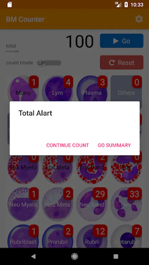 - pop-up alart 100, 200, 500, 1000 cells count
