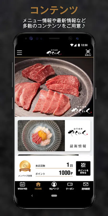 The official app of "Wagyu Yakuniku" where points are accumulated for each visit to such Wagyu Yakiniku "Yakuniku"