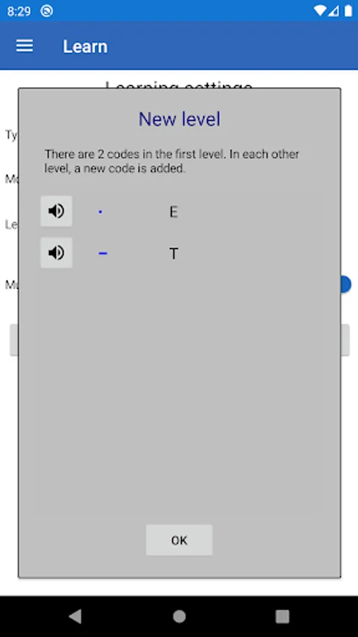 • When you are supposed to fill in the translation for a Morse code, the code can be played using the speaker. You are also training recognizing the Morse code by its sound.