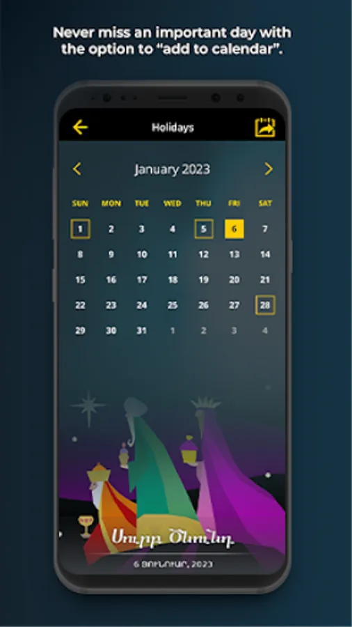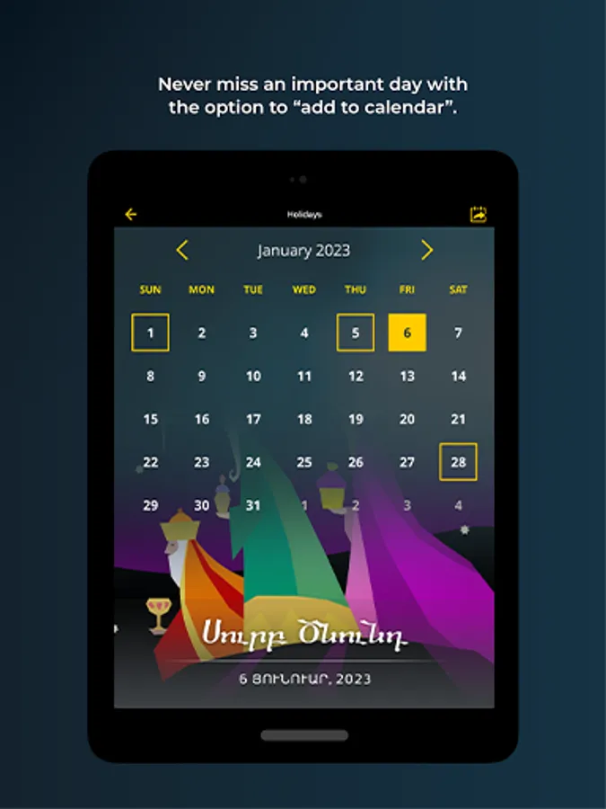 This app features a full calendar year of the most popular holidays celebrated by the Armenian church and people around the world.