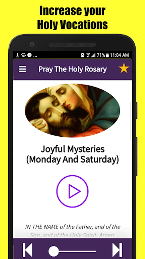 Use it at night before going to sleep, or while you do something else listen/pray along while you are in the cars/bus or on-the-go. Just launch, press play and pray!