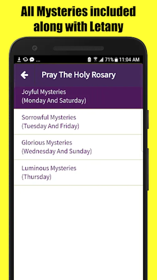 The Holy Rosary is considered to be a perfect prayer as within it, lies the awesome story of our salvation. This app will let you and your family meditate the mysteries of joy, of sorrow and the glory of Jesus and Mary. It's a simple praying app, humble as the rosary itself.