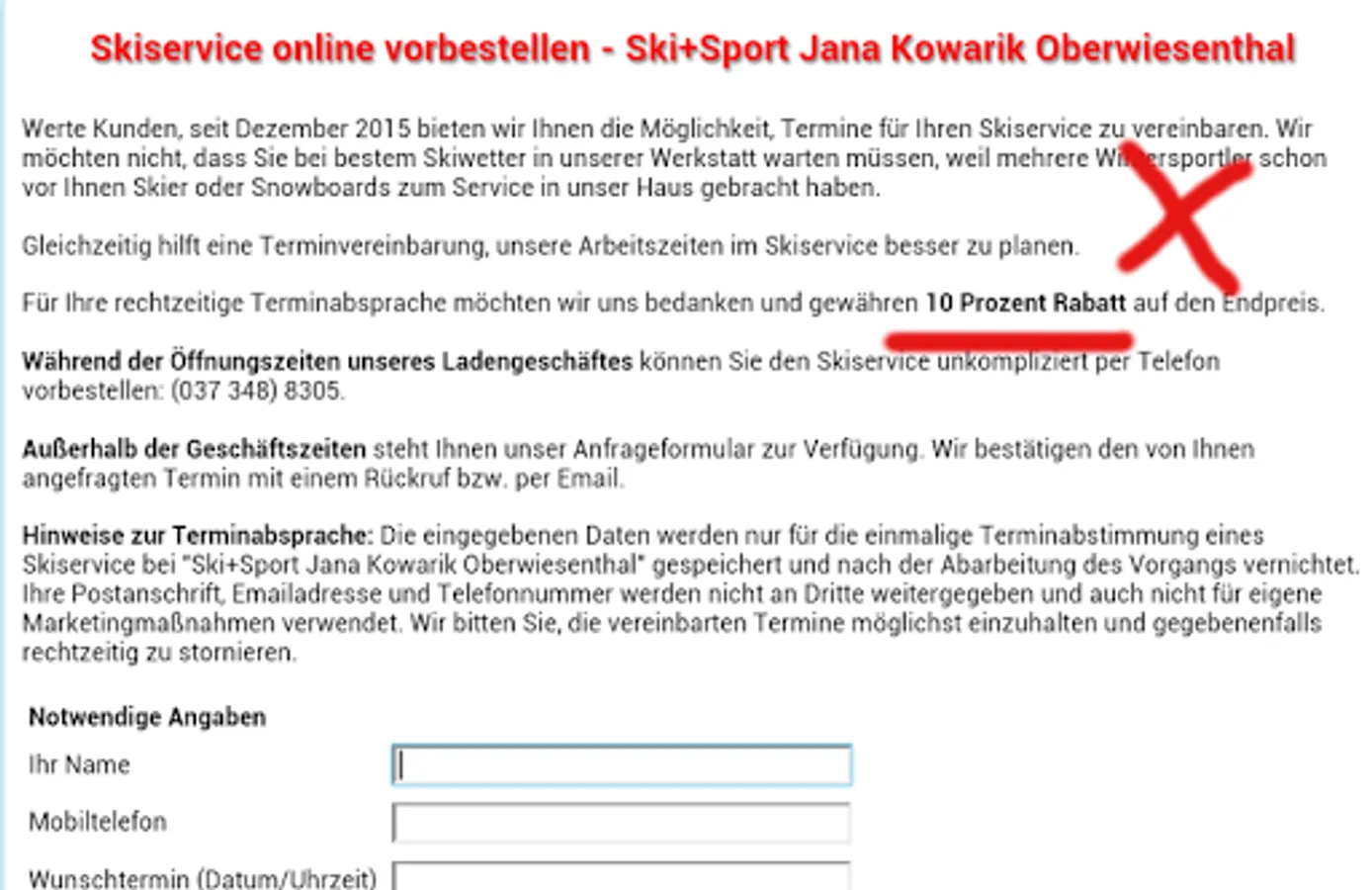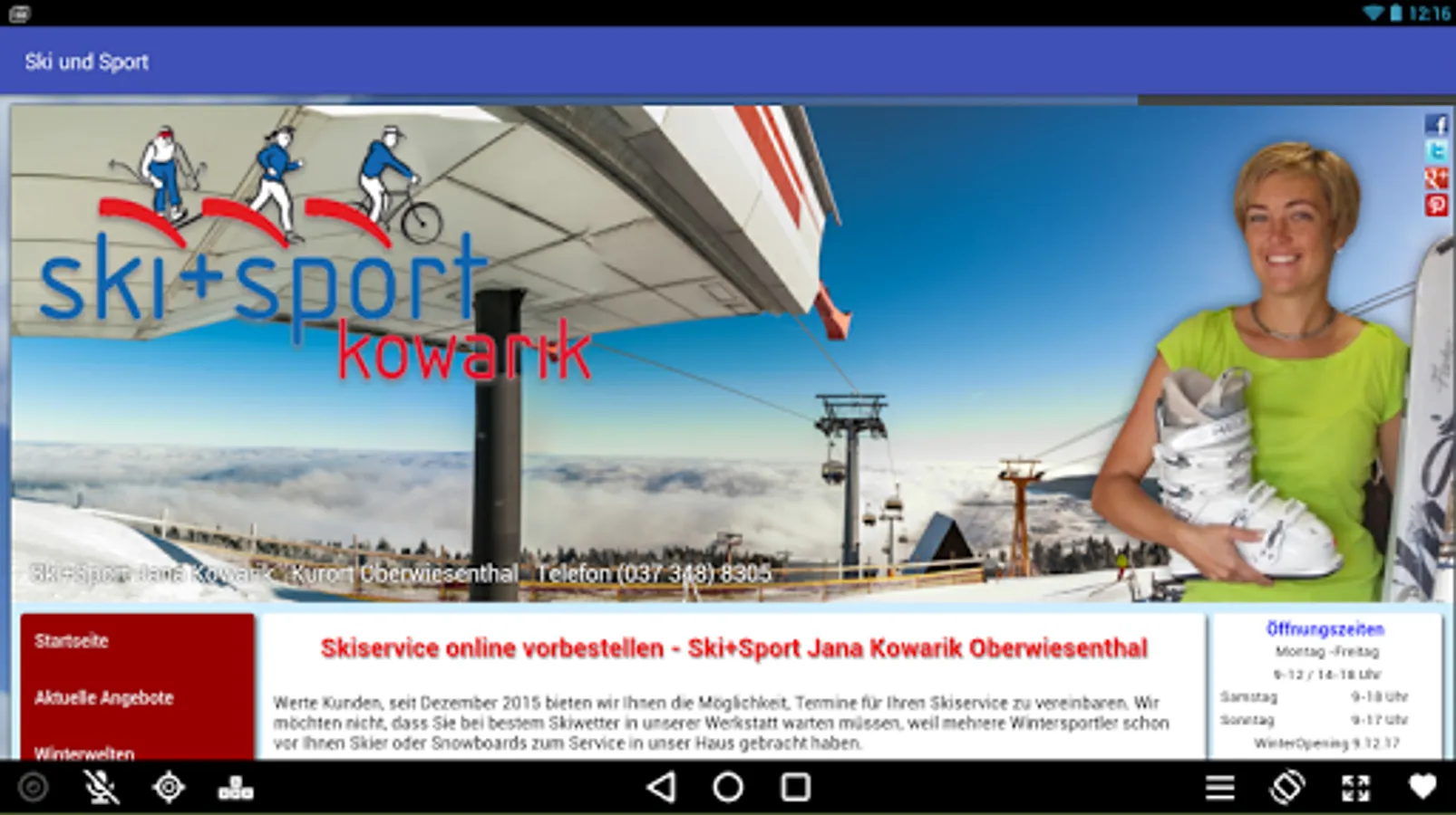 Android app for easy and fast access to the online services of "Ski + Sport" Jana Kowarik in Oberwiesenthal: Ski rental, ski school, ski service, sports shop. Nordic walking and trekking. Activities with e-bikes.