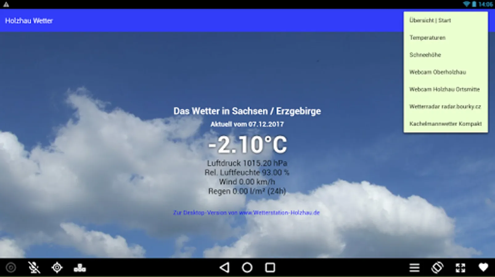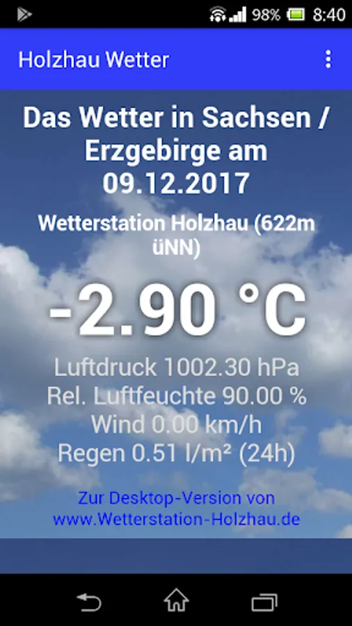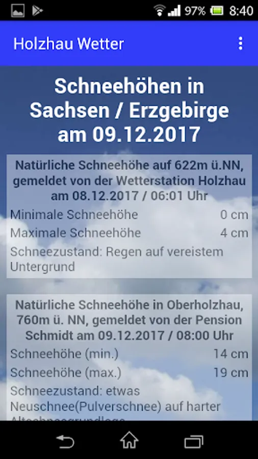 Quick Launcher for the site weather station Holzhau in the Ore Mountains. Current measured values, snow reports and webcams.