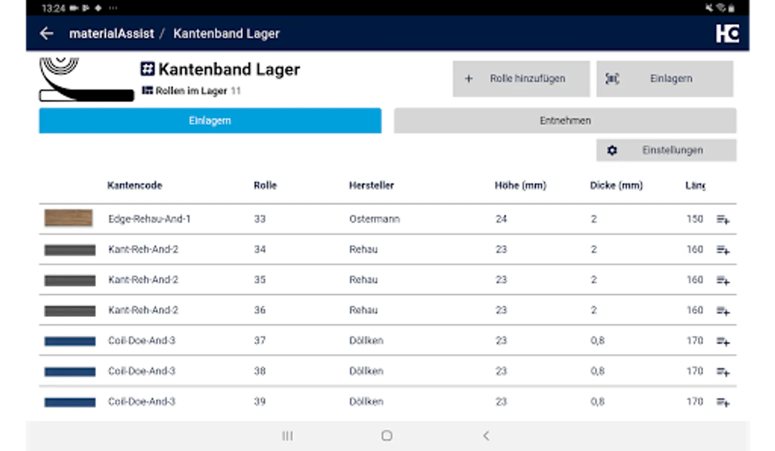 With materialAssist you always know where all your edging strips are and how much material is still available for each type at the workstation. You can also display the precise location of the edging strip that you want to process next.