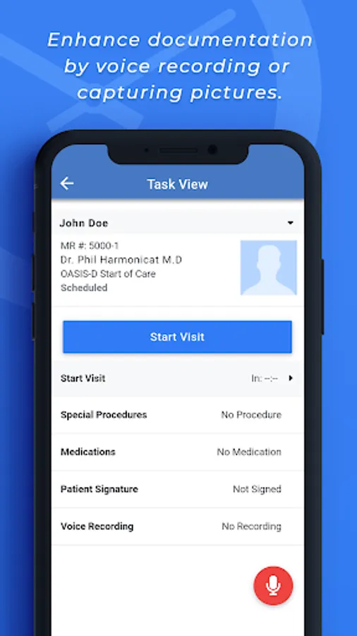 RealTime Workflow is an integrated mobile application which links the task documentation process from the RealTime Workflow web. Clinicians can easily access and complete patient health evaluation, sign the document, track medications, attach voice recordings, and much more.