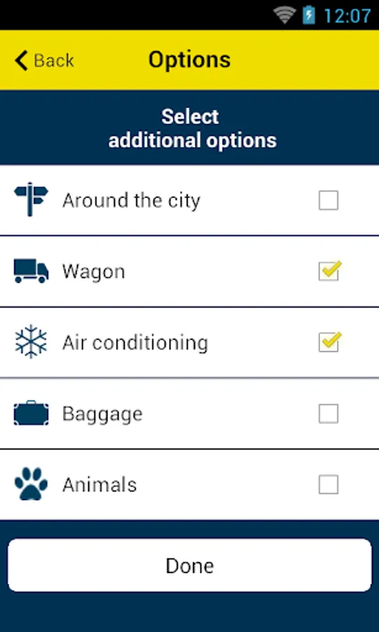 - Additional order parameters (air conditioning, interior loading, transportation of animals, the call station wagon);