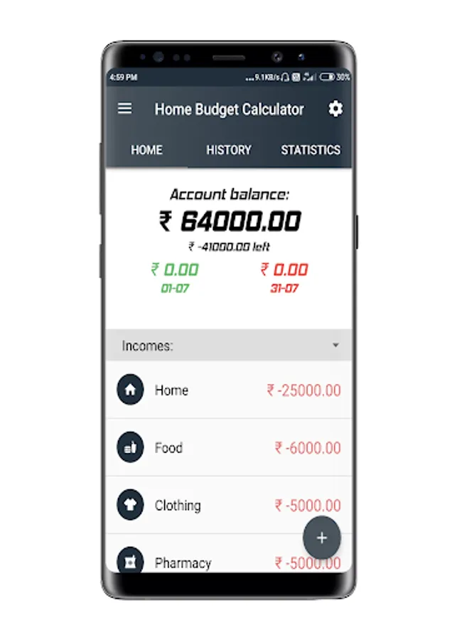 Home budget Calculator - Care for your Budget by tracking your income and expenses