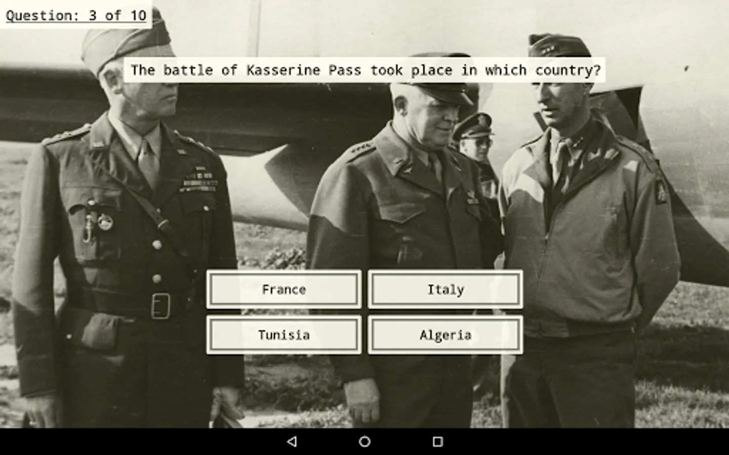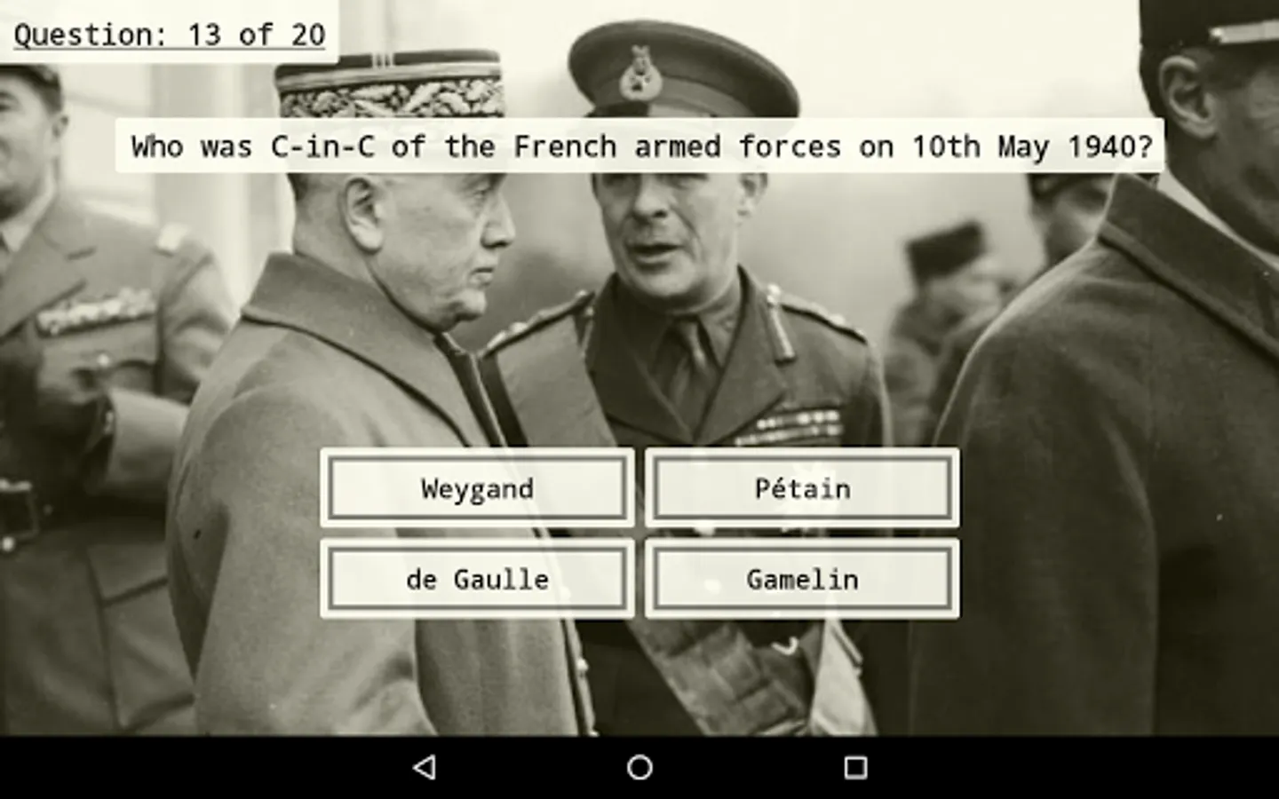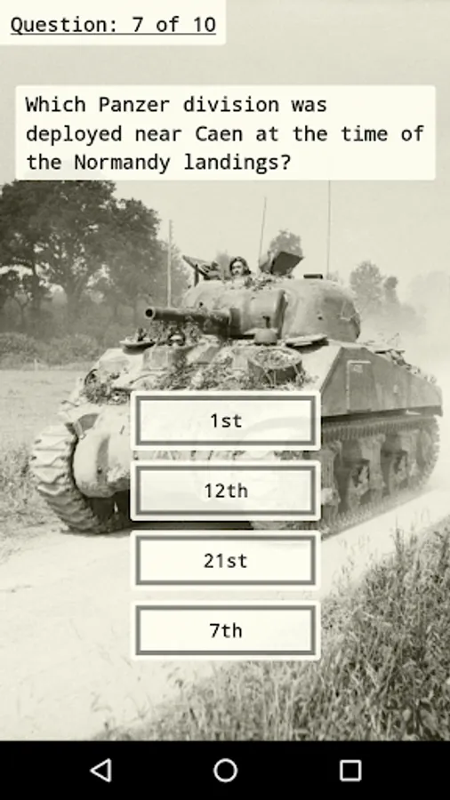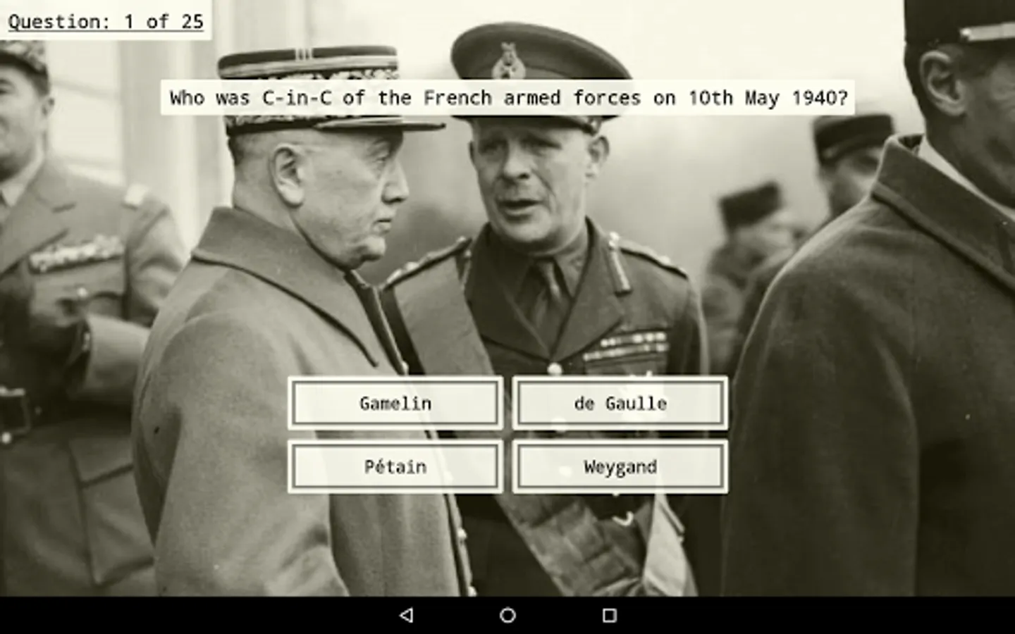 Do you consider yourself knowledgeable in all things World War II? Put your knowledge to the test and see how well you go in this free and simple to use quiz app!