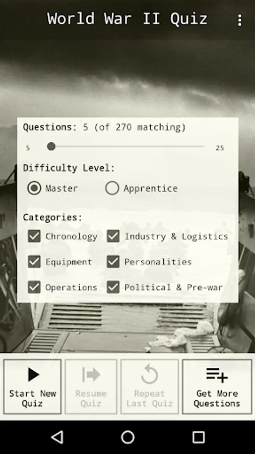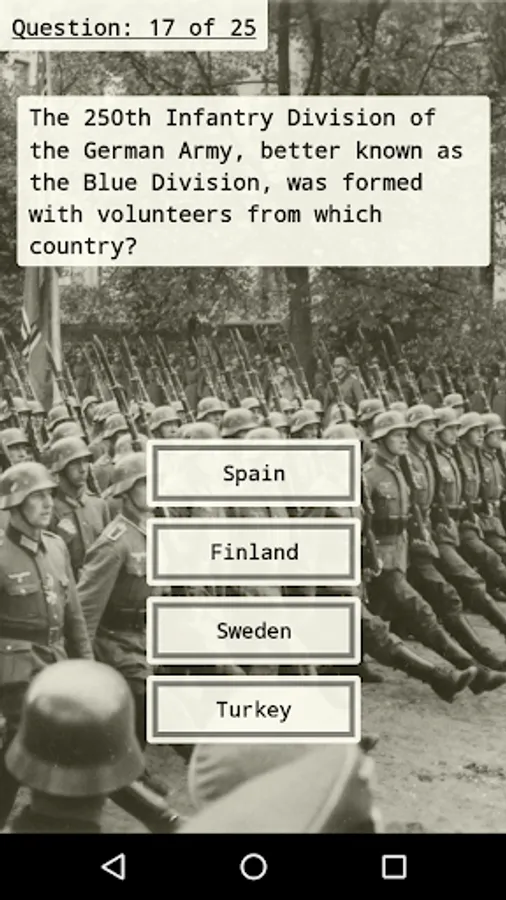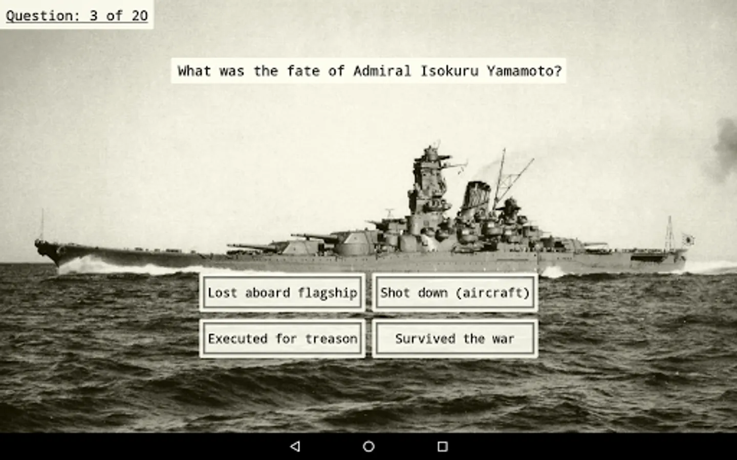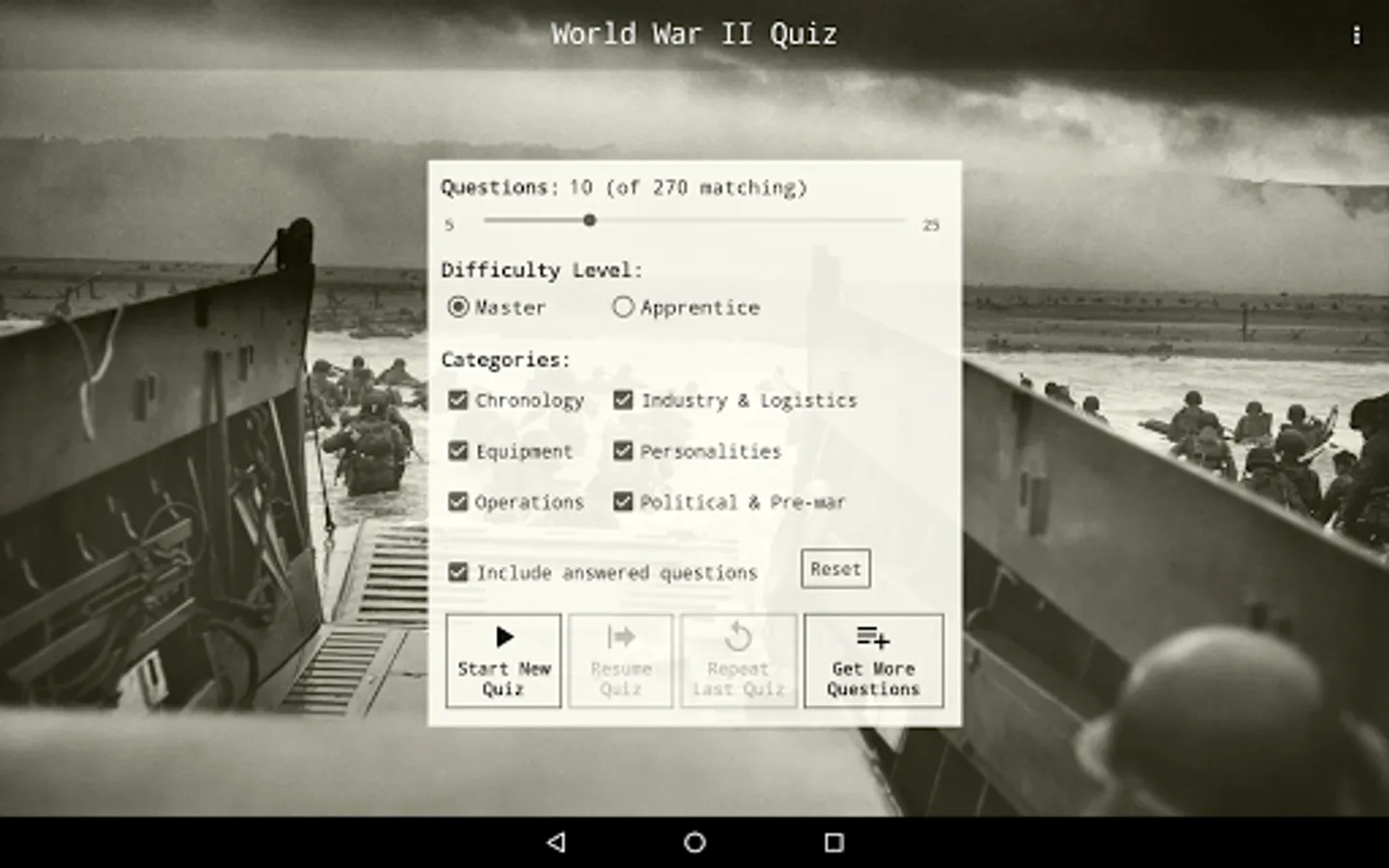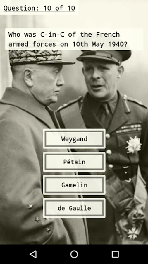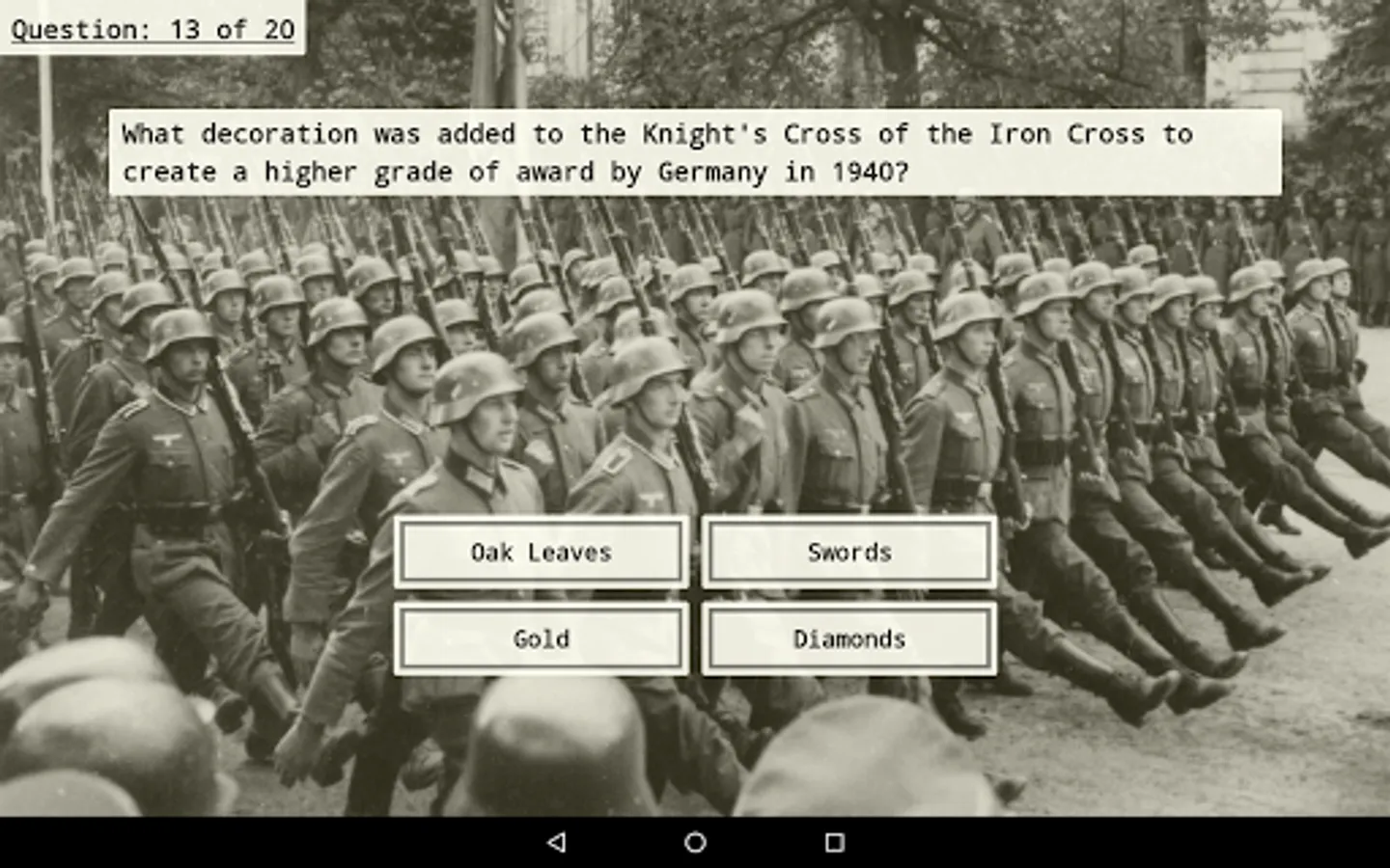 Do you consider yourself knowledgeable in all things World War II? Put your knowledge to the test and see how well you go in this free and simple to use quiz app!