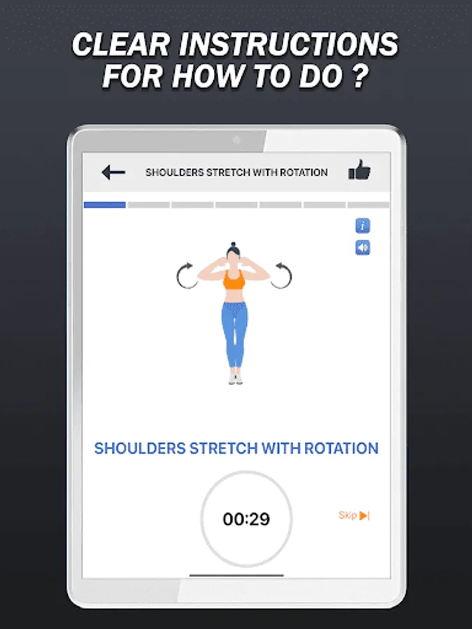 ● Animated previews for Workouts by professional trainers that show you the right fitness workouts with detailed description.