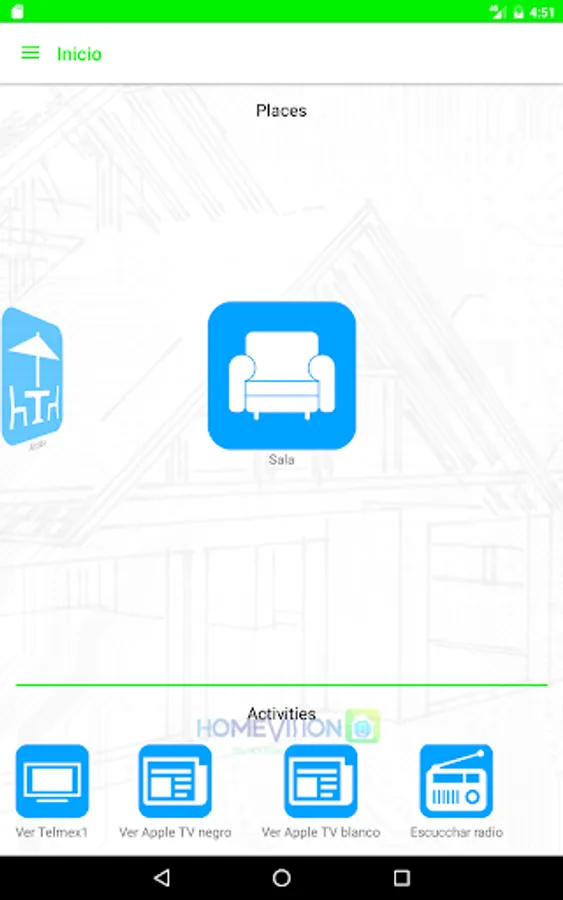 With HomeVision you can turn off lights social area from the comfort of your bed.