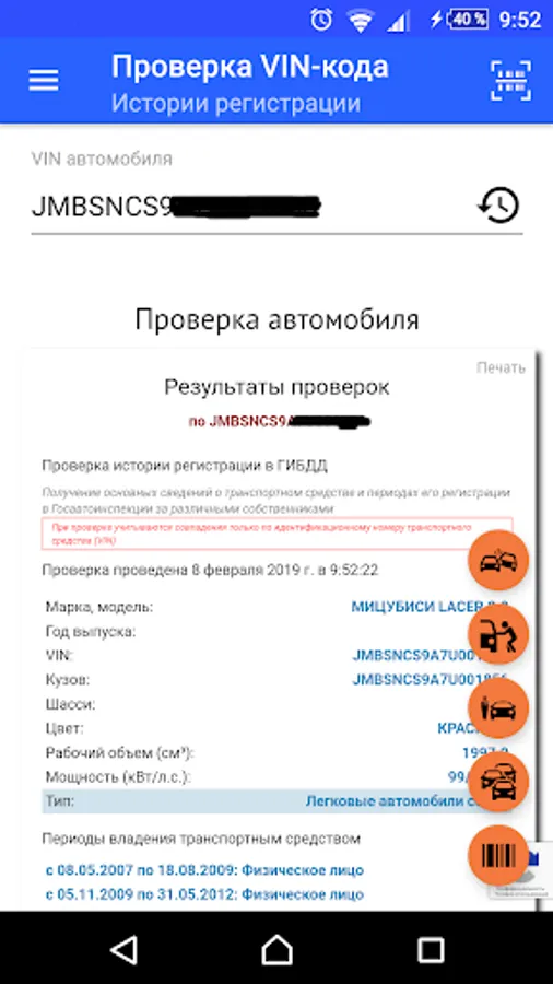 Check the VIN-code - is an application that allows you in a convenient form of VIN-code of the vehicle to gain access to public information on the website and in www.gibdd.ru own database applications. The application saves the query history in the cloud, so you do not have to remember previously scanned VIN-codes. Suffice it to sign in through Facebook or Google + VK, or in the annex and the story will always be available to you requests.