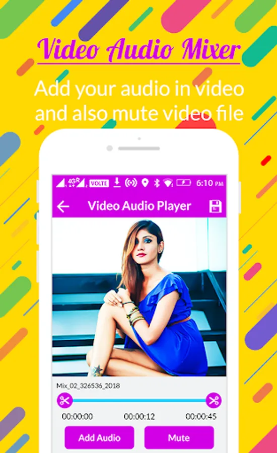 Audio video mixer is one type of video editor app, using this app you can add or mix your favorite audio files to video files. This application manage audio file size if the audio file length is larger than video files, it will be automatically trim audio to video's duration.