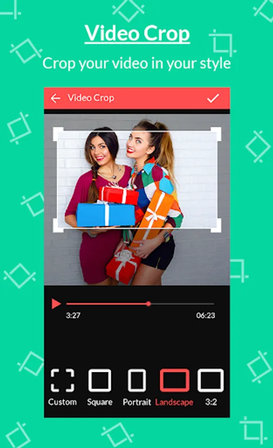 Video Crop provides facility of crop video with custom size, square size video, portrait video, landscape Size video, 3:2 Size Video.
