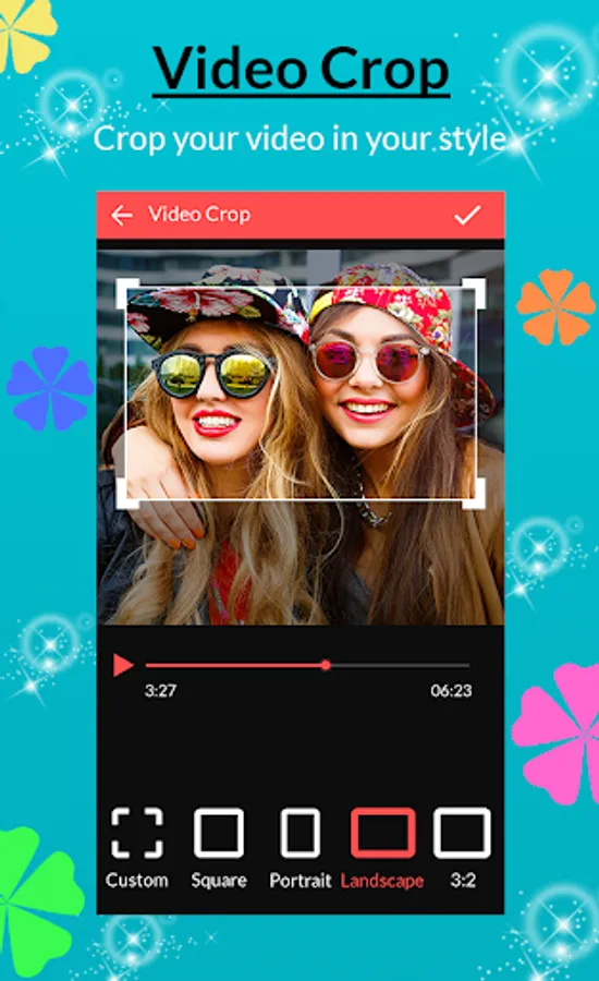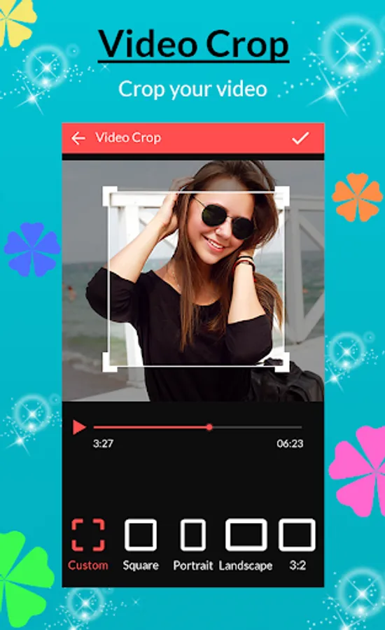 2. Video Crop provides facility of crop video with custom size, square size video, portrait video, landscape Size video, 3:2 Size Video.