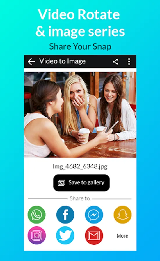 Video to Image Converter helps you to capture images from your favorite video and you can easily share those with your friends. (video to photo / video to image). We can say this app as