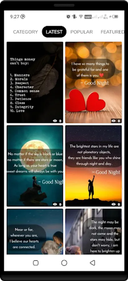 Daily Wishes and Quotes is collection of status images, Gif and Videos are organized according to 15+ Categories.