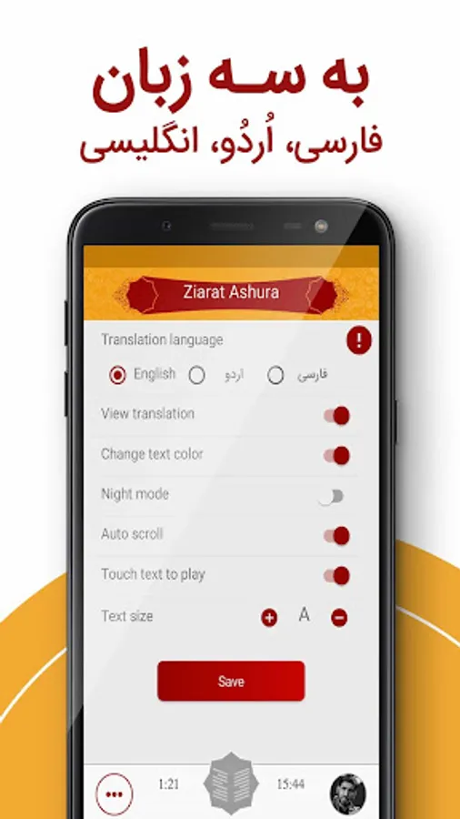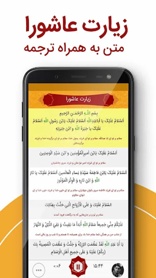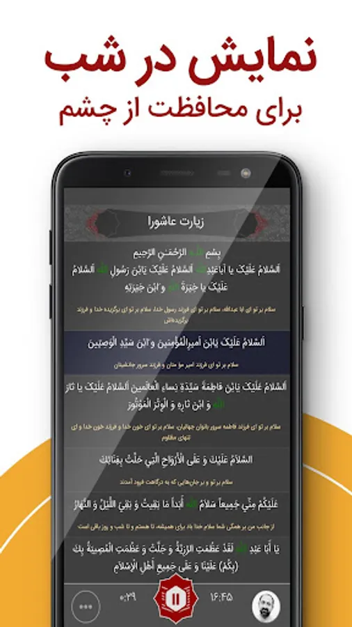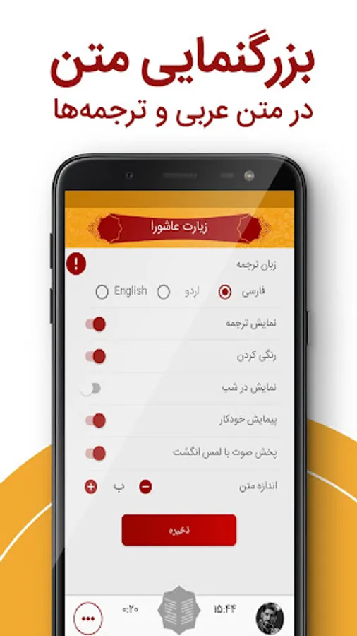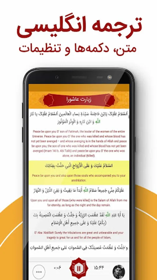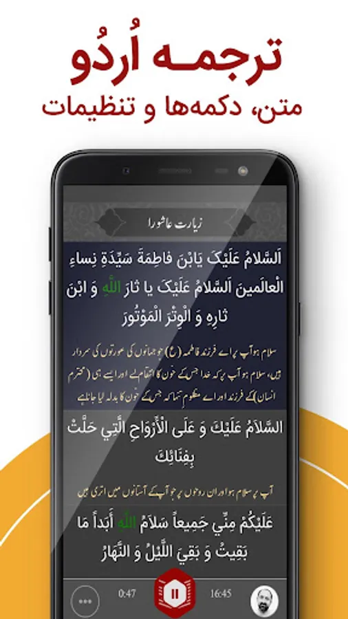 🔸امکان نمایش و حذف ترجمه زیارت عاشورا به سه زبان فارسی، انگلیسی و اردو