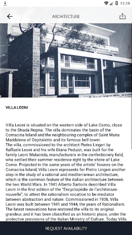 Villa Leoni is a versatile property that welcomes, entertains and generates contemporary contents of art, fashion and design that become communication. The app created ad hoc allows you to create and organize any type of event, completely "tailor made".