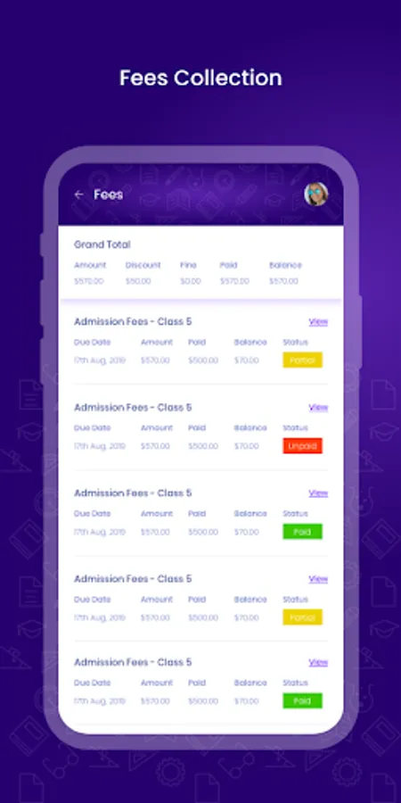 Account Management: The application allows managing the accounts of the school, staff and students, including collection, payment and other financial reports.