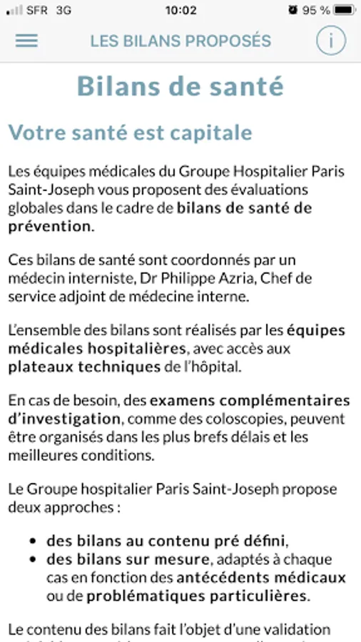 Paris Saint-Joseph Hospital has set up a mobile application called Check Up St-Jo, allowing its partners to offer a comprehensive health check-up to its subscribers.