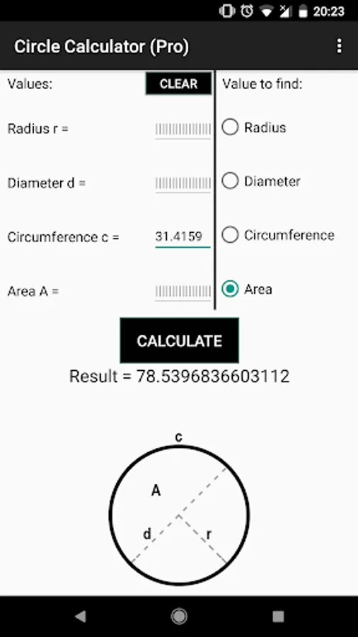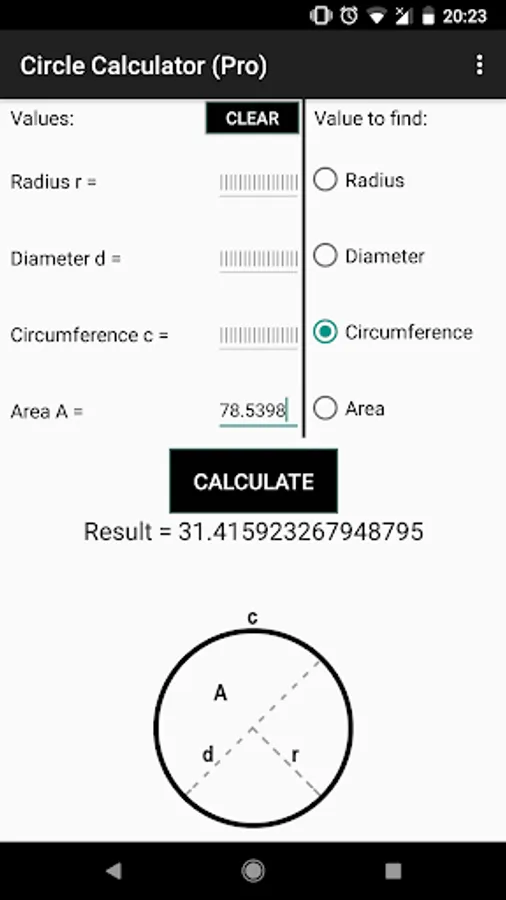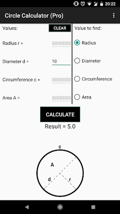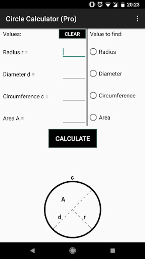 This is the pro version of the "Circle Calculator" application (See bottom for link).
