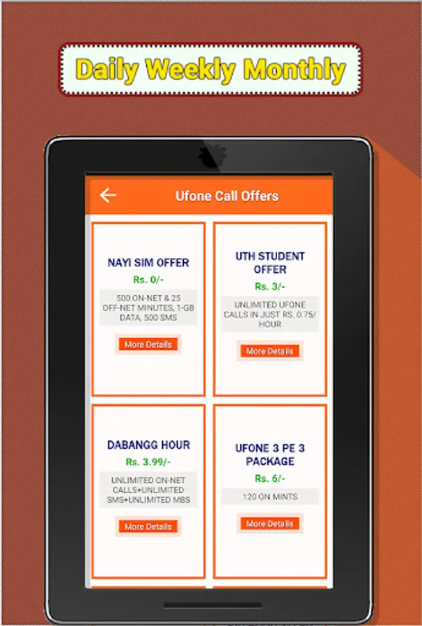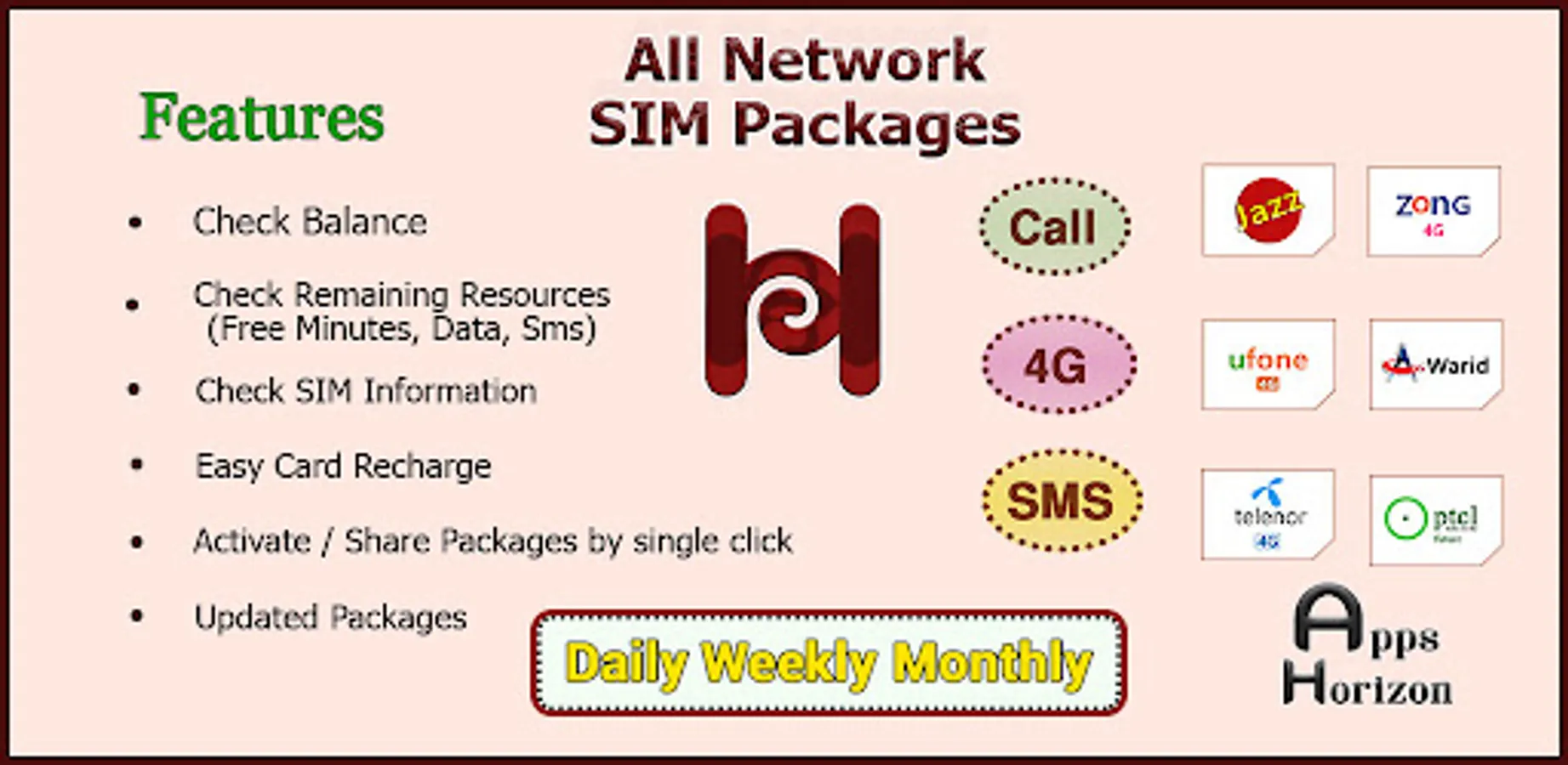 All Network Packages Pakistan application presents different networks sim packages like Ufone call, sms, internet packages, call package zong, zong call package monthly, and Zong daily calls pkg, weekly all network jazz, warid, Telenor call, sms, internet packages for you in a single place.