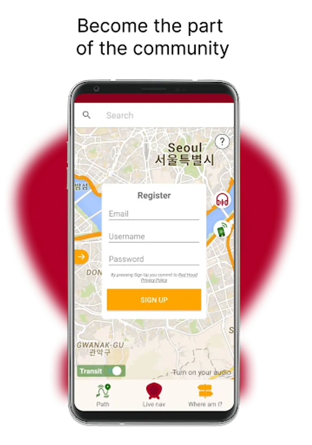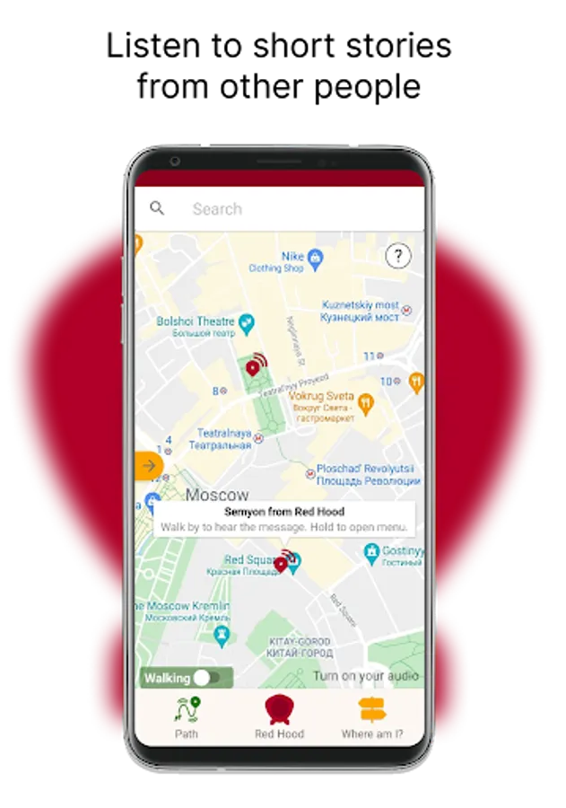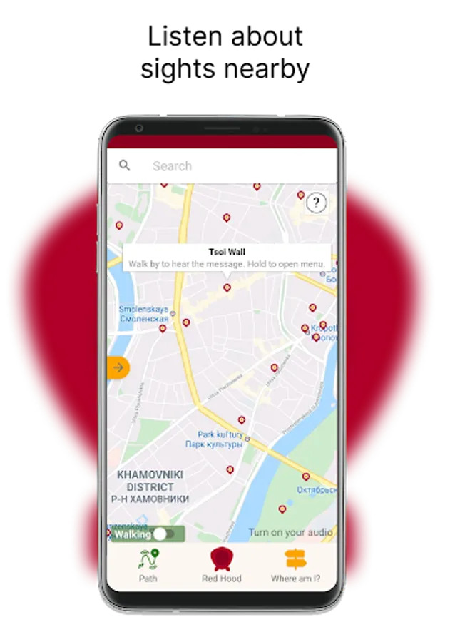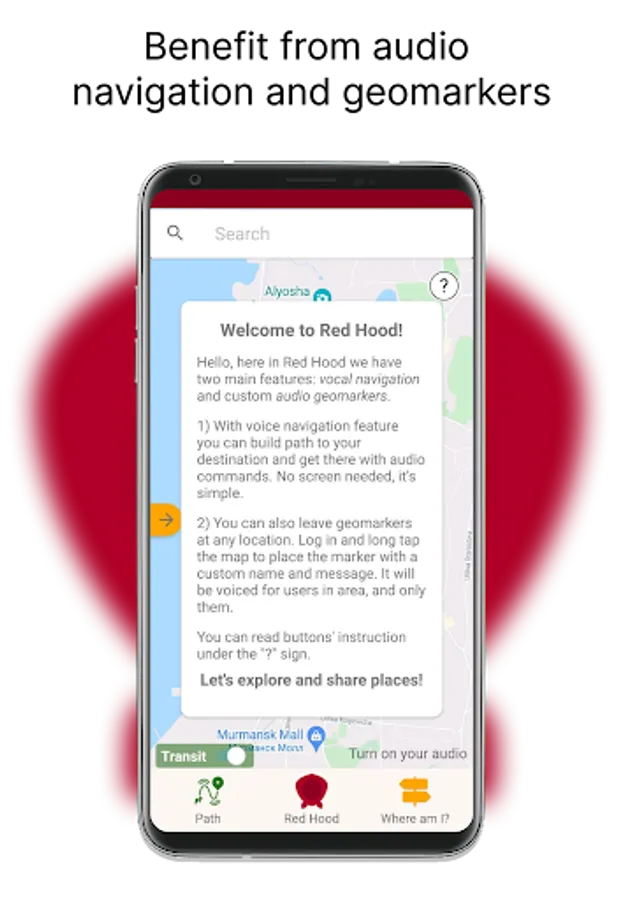 This is Red Hood, audio navigator app to guide you along the route with audio commands.