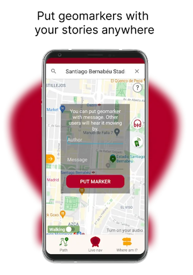 Geomarker is a point on a map with short message. It is voiced by speech module only for people around. Connect location on the map and message with a sound.