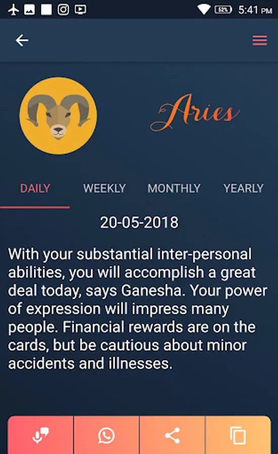 • Weekly & monthly Horoscope.