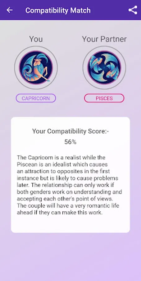 Learn about your personality traits based upon your astrological stars. Understand your zodiac's strengths and weakness. Are you an introvert, reserved person or your numbers make you very social, fun and adventurous? Our personality analysis explores hidden traits about you and reveals all that you need to know about your personality. This app provides a love compatibility test based on the zodiac signs for Aries, Taurus, Gemini, Cancer, Leo, Virgo, Libra, Scorpio, Sagittarius, Capricorn, Aquarius and Pisces.