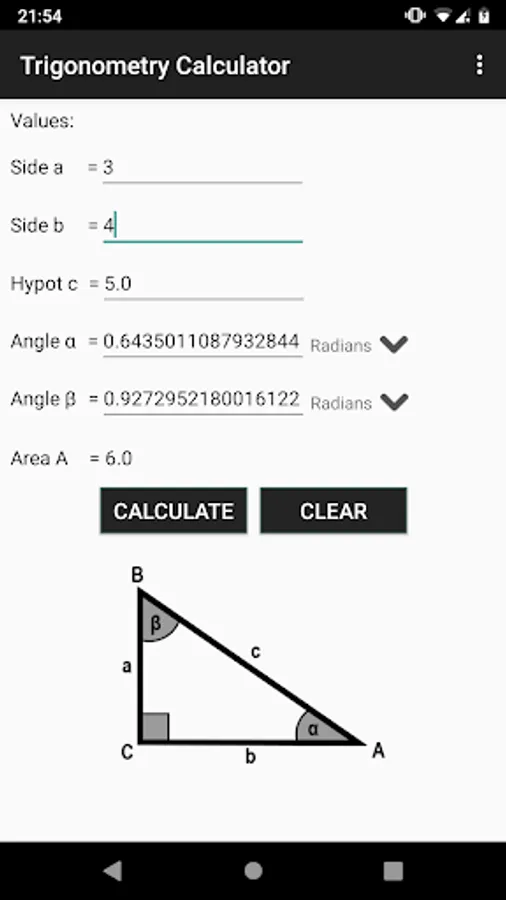 • Able to calculate the value of sides, angles, and the area of a right-angled triangle given valid known values.