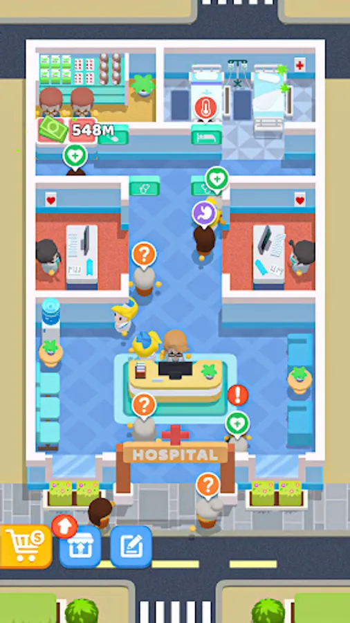 3. Hospital Expansion: As you progress, you can expand your mental hospital idle empire in Hospital Hustle. Establish more branches, develop new medical departments, and provide more medical services to create a hospital empire tycoon idle. In this build hospital game, your goal is to build a world-class medical institution that attracts more patients to your 2 point hospital.