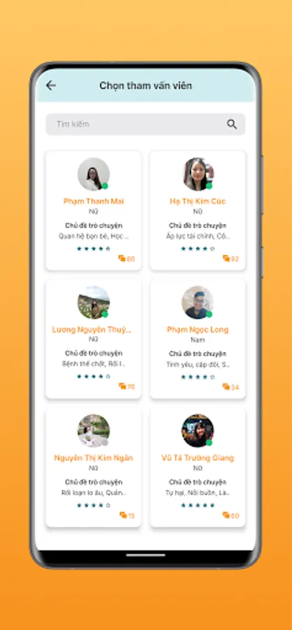 • Freedom to choose appropriate Counselors according to needs: Carota provides a list of Listeners * and Counselors * with information displayed transparently including: Full name, age, gender, photo portrait, education, work experience and consultation fee.