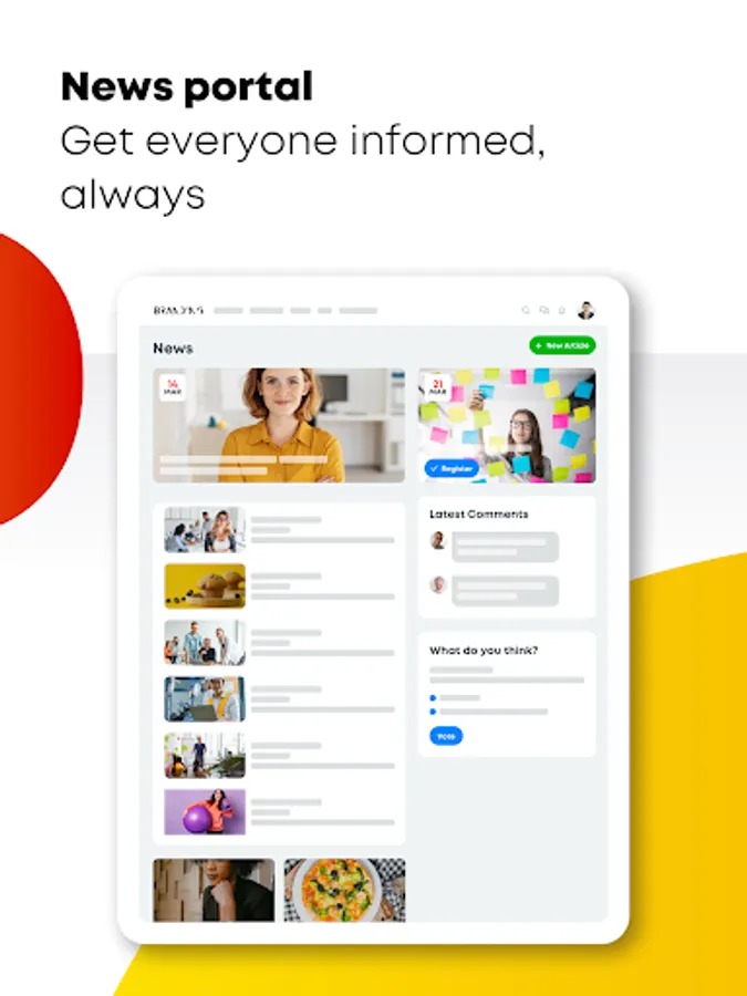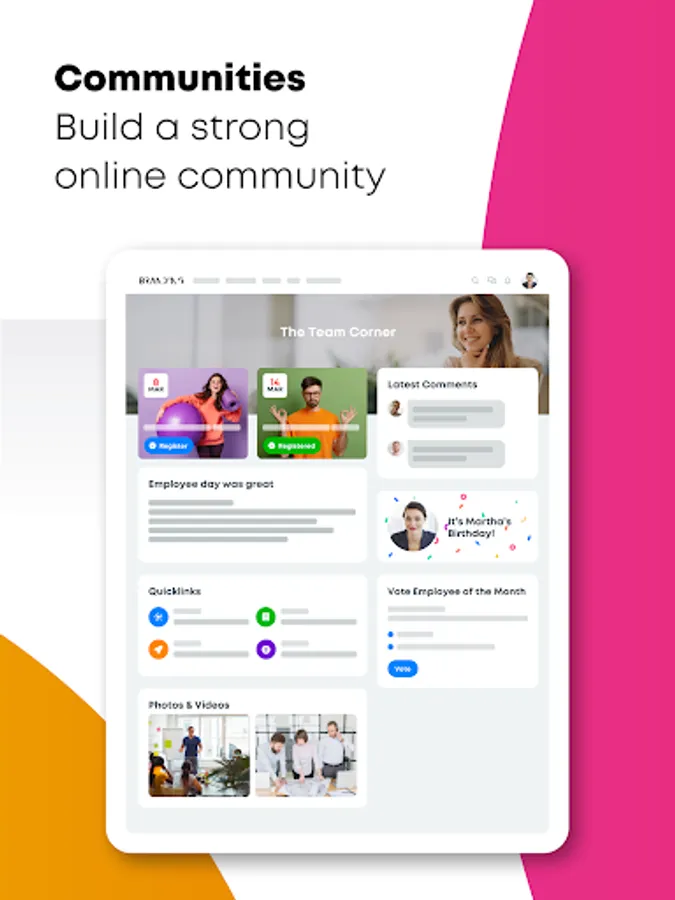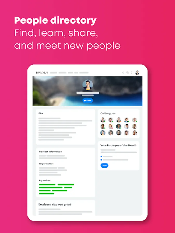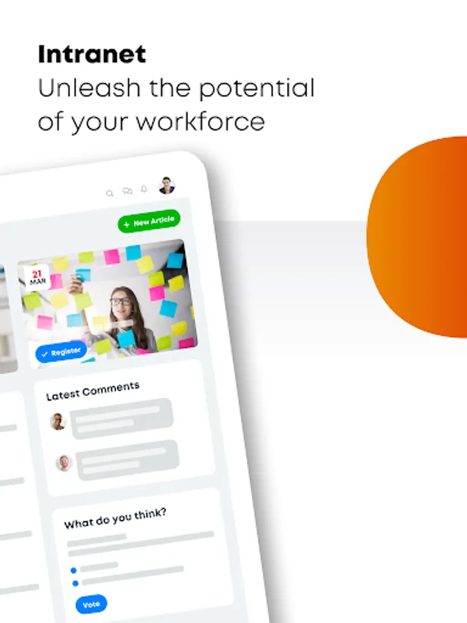 Everything you need during a working day in one place. That’s exactly what our intranet is about. This modern employee experience platform connects people, information, and processes. The intuitive eLearning solution ensures that you can train employees and onboard them quickly.