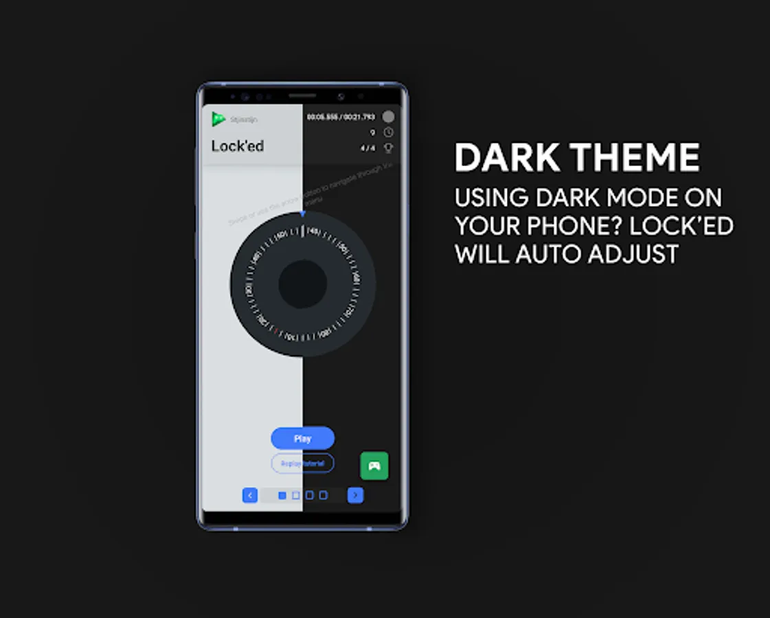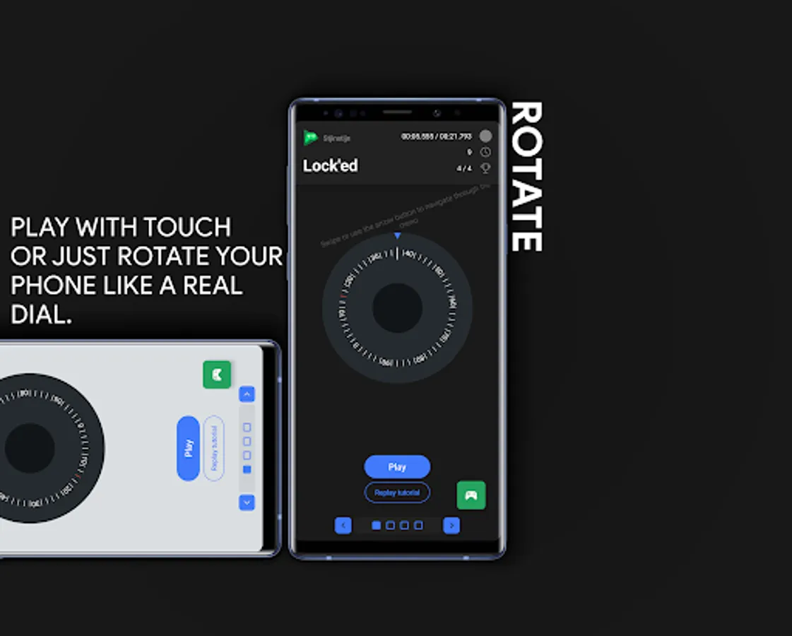 Lock'ed is an app where you can crack a safe against other people in the world. You can either listen to the clicks of the safe or you can feel! In this game you will have to determine by means of sound or feeling whether you have found the right combination of numbers.
