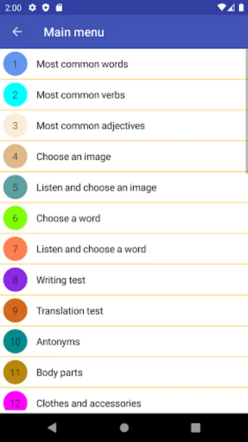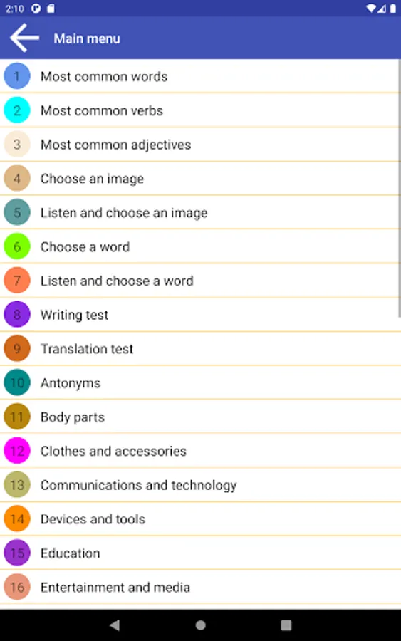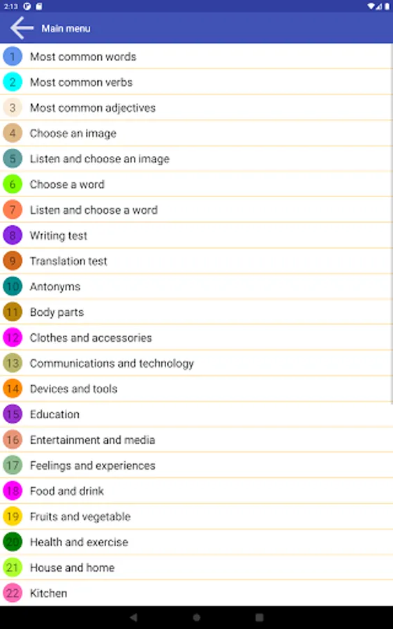This application will help you to learn how to read, write, and pronounce words and phrases. It is a fun and easy to use educational game that includes thousands of words and phrases that provide you with knowledge in real-world situations. The app is categorized into 100 topics covering everyday life or travel situations.