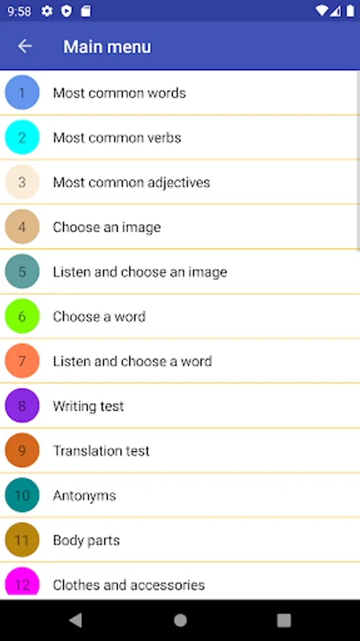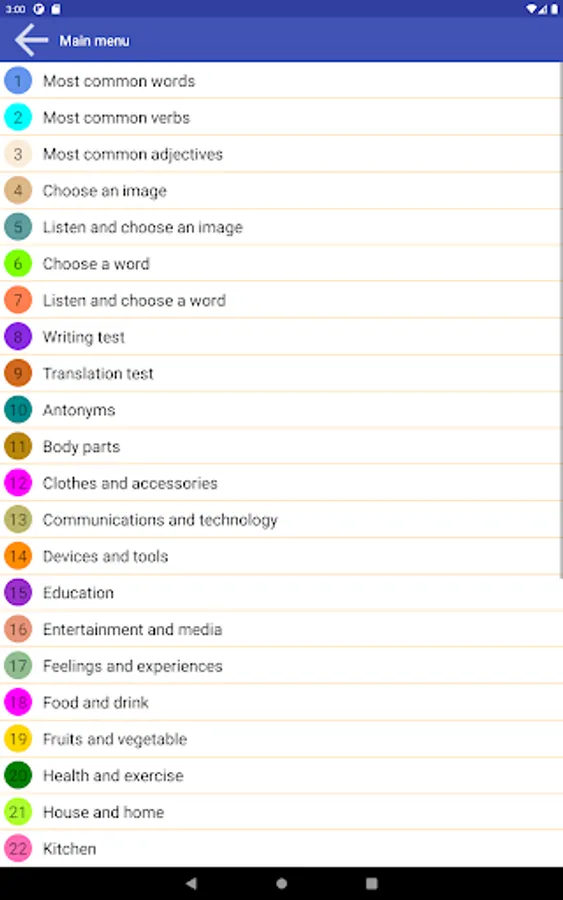 This application will help you to learn how to read, write, and pronounce words and phrases. It is a fun and easy-to-use educational game that includes thousands of words and phrases that provide you with knowledge in real-world situations. The app is categorized into 100 topics covering everyday life or travel situations.