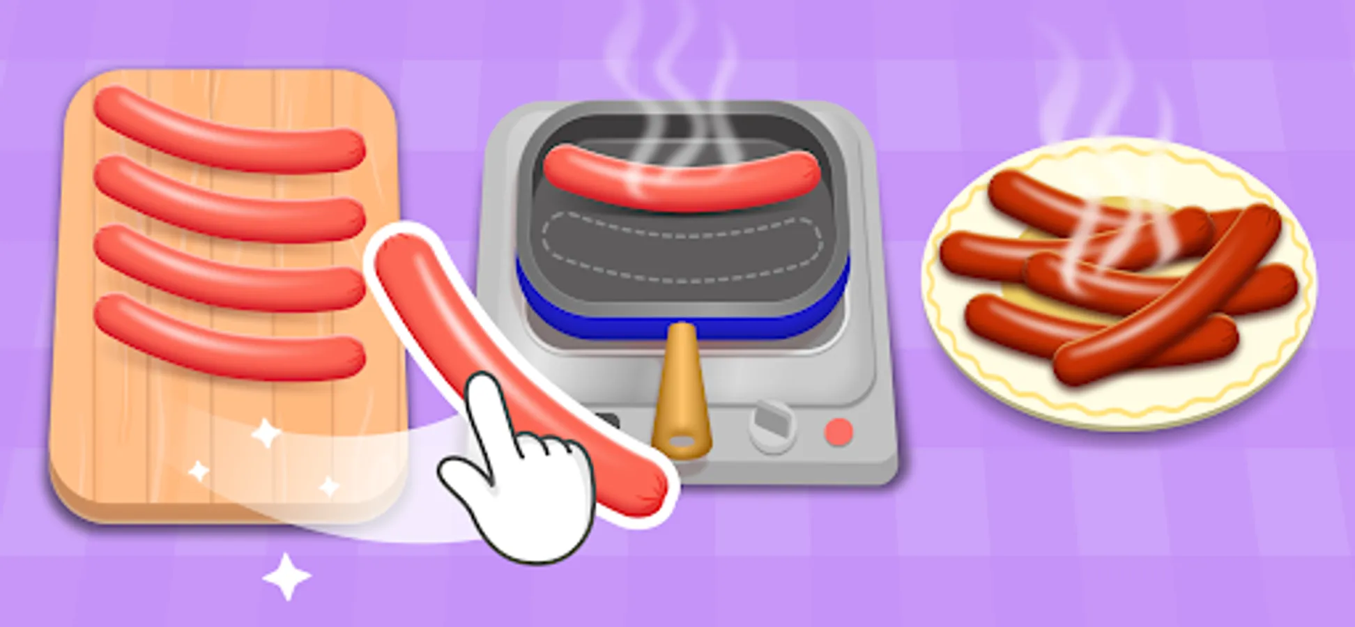 Play and have fun with kids game hot dog cooking! Exciting pre-k games interactiveness is a good way to dive into the atmosphere of food making and practice to work in the kitchen games for girls and boys. Open the restaurant for babies, develop fine motor skills and learn more different fast-food recipes.