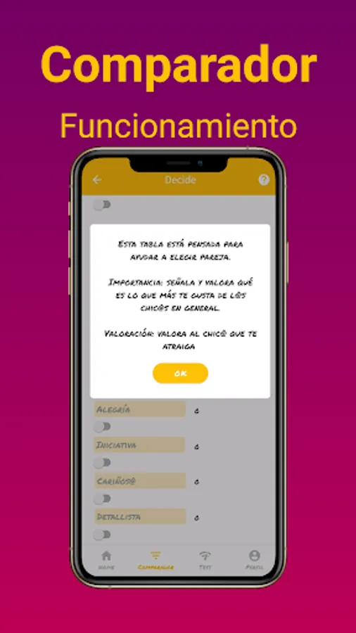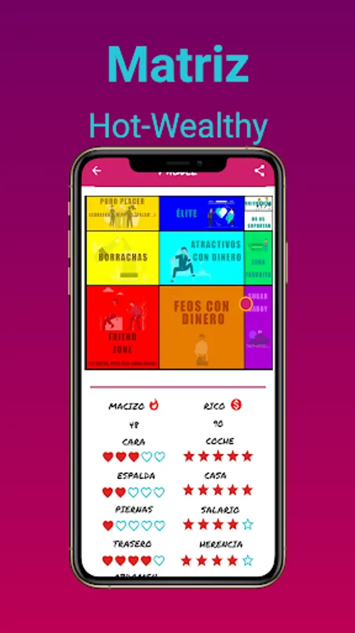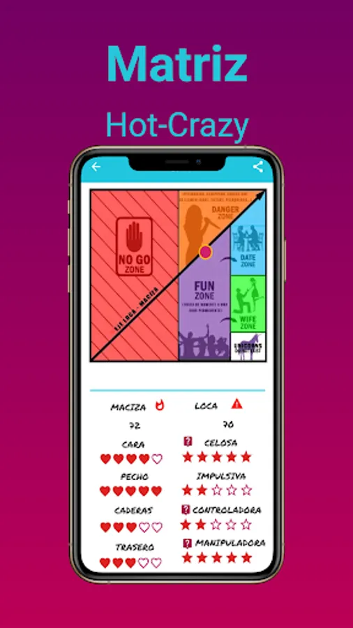 The Hot Crazy COMPARISON is perfect for knowing the relationship potential of any guy you like, through an interactive decision-making table. Download now!