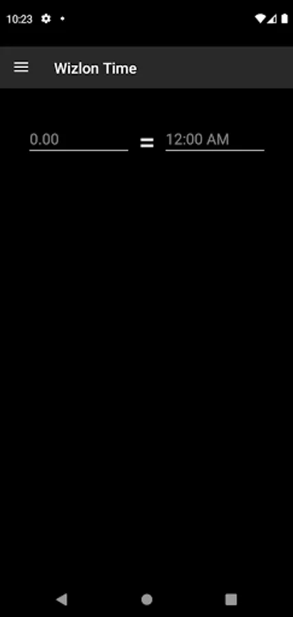 Wizlon Time is a base-10 system of time. One might think of it as "metric time." Days are divided into 10 deci-days (dd), deci-days are divided into 100 milli-days (md), and milli-days are divided into 100 toli-days (td). Midnight is 0.00. Noon is 5.00.