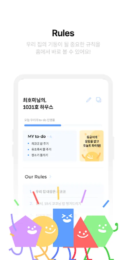 Let's check the chores that you and other roommates have to do in the to-do! You can check the progress whenever the to-do of our house is checked.