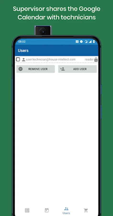7. Add the technician's account to the access list in "Users" tab