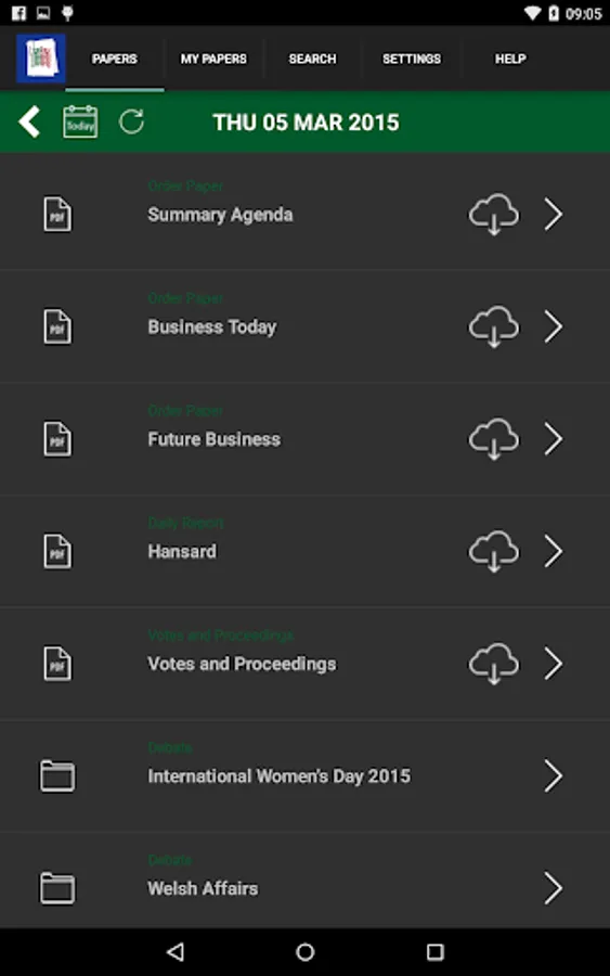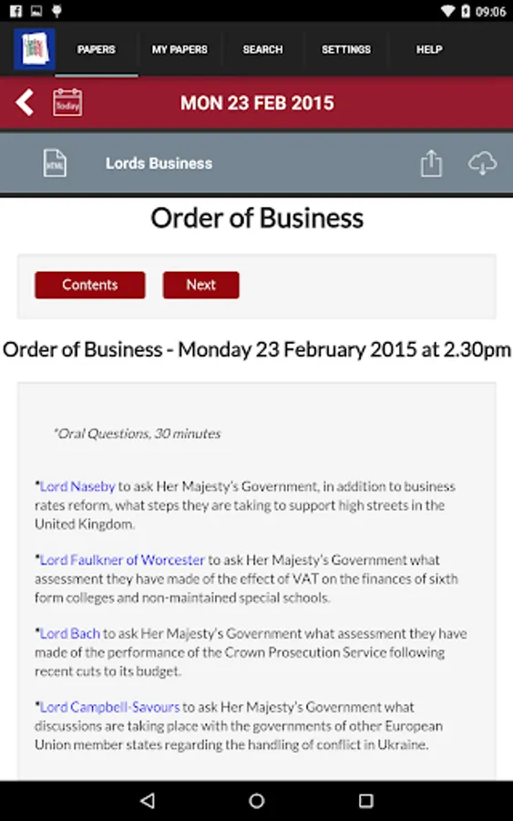 The HousePapers application contains papers relating to Parliamentary business in the House of Commons and House of Lords on a month by month basis.