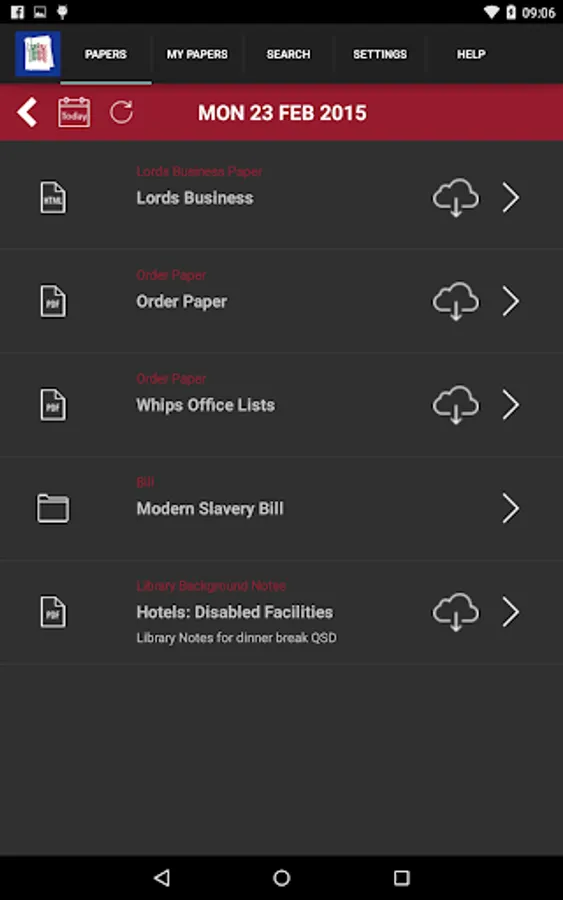 * Settings – Customise the types of paper you receive and switch between Houses.