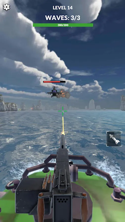 Destroy all enemies at sea and on land. Improve the boat, use the rockets and defeat them all!